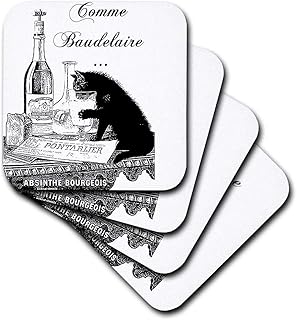 (set-of-4-Ceramic) - 3dRose cst_110380_3 Black Cat French Vintage Art-Ceramic Tile Coasters, Set of 4