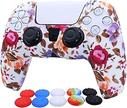 ピンク PS5 コントローラ スキン RALAN シリコン コントローラ カバー スキン プロテクター PS5 コントローラー対応 (サムグリップ x 10、レッド+ブルー+グリーン+ホワイト+カラフル/2) (レッドフラワーピンク)