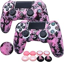 ピンク PS4 コントローラ スキン RALAN シリコン コントローラ カバー スキン プロテクター / PS4 Slimm/PS4 Pro コントローラー (ピンク プロ 親指グリップ x 6、スカルキャップグリップ x 2) (迷彩ピンク)