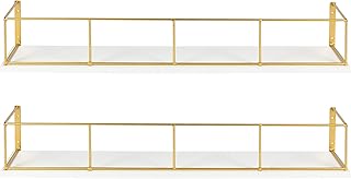 Kate and Laurel Benbrook 木製と金属製壁棚セット 2パック 24インチ ホワイト/ゴールド 2個