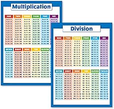 2パック - 掛け算表と分割ポスターセット - 算数教室チャート(ラミネート、18インチ x 24インチ)