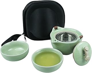 Kcgani ポータブルトラベルティーセット セラミックカンフーティーポット 1ポット2カップ ストレーナー付き オールインワンバッグ 旅行 出張 アウトドア ピクニック 自宅 オフィス ギフト
